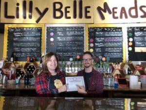 Lilly Belle was the first meadery in Erie County and was embraced by the local craft beer scene where Joe and Tricia found niched out their place and eventually took their 7-8% session meads down to 5% and that has been a game changer for them. They use a variety of yeasts, including wine and beer styles, and they are not shy to play around with flavors. They can turn around session meads in 2-3 weeks and most traditionals and melomels in 2-3 months. They also do some bochet’s and those are 2-3 months as well.