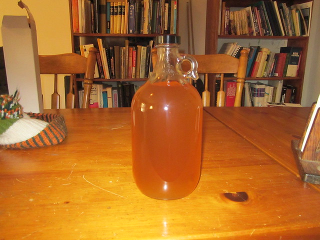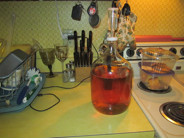 After successfully making a 1 gallon batch, I made a 5 gallon batch. Last Sunday, I racked it from the bucket to a carboy. When I was done I realized that it was not a golden yellow but rather a brown color. It has remained that color for almost a week. I sterilized everything before I racked and there was nothing out of the ordinary during the process. I just do not remember the first batch doing this.
