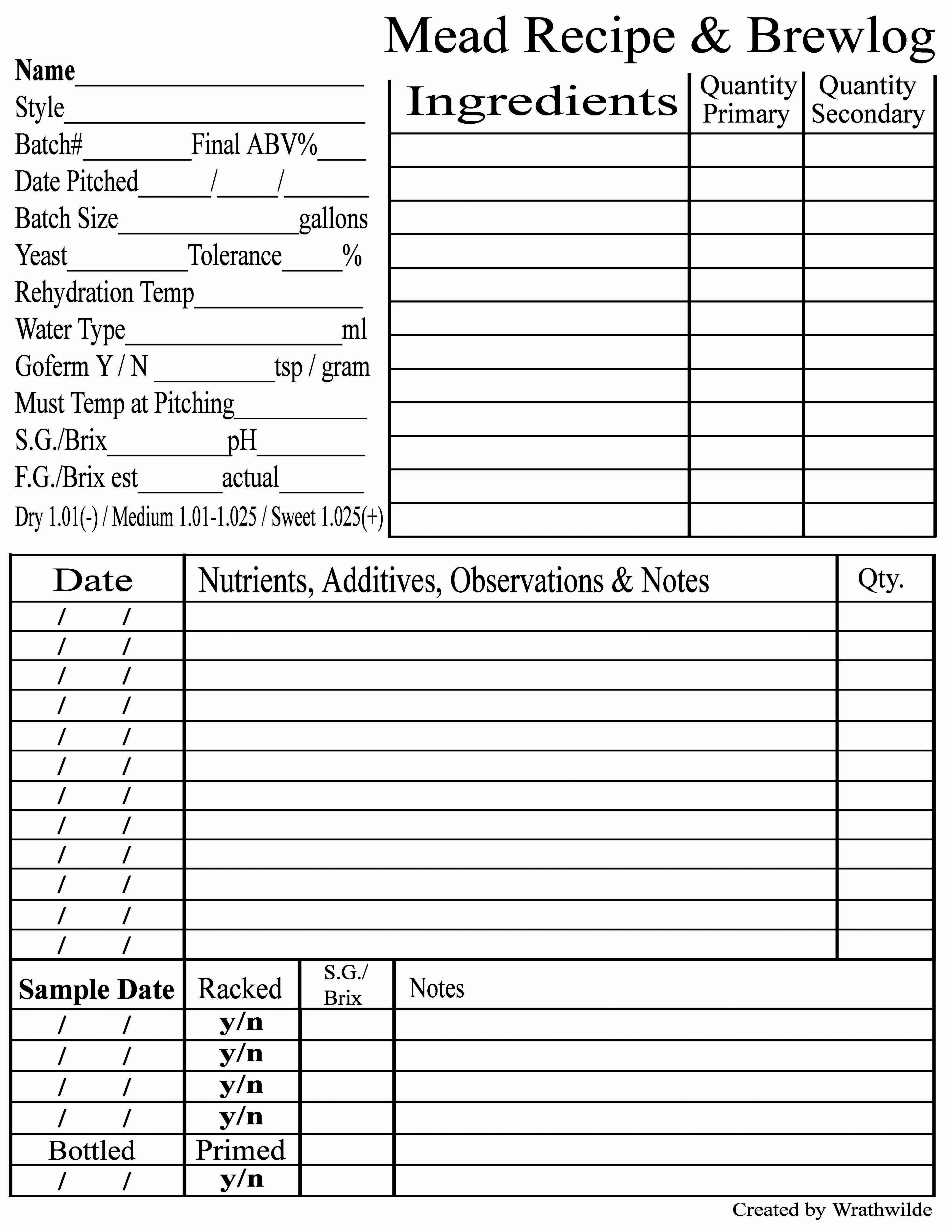 This is a very important part of the brewing process as it can not only help you reproduce a good Mead, but it can identify what might have gone wrong if a batch turns out bad. Keep very good notes describing exactly how everything was done, and continue adding to the notes as the Mead matures, right up to the point where it is ready to drink. The notes should include the recipe, the process used, any observations (such as the time it took to start fermenting, or how long fermentation took to completion), how the Mead looks and smells, any problems encountered, and how it tasted after aging. Appendix 8 provides a sample Mead recipe and notes showing the sort of things that should be included.